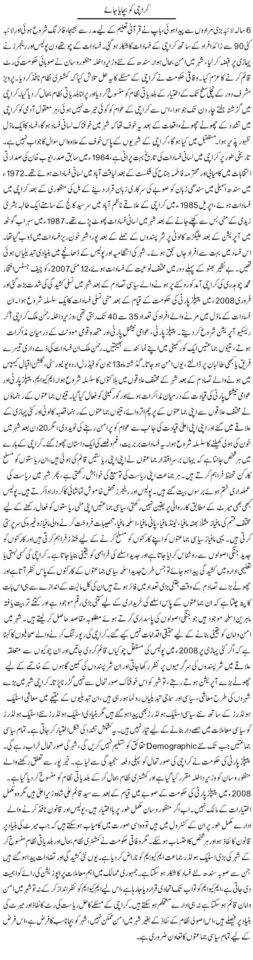 Karachi Ko Bachaya Jaye by Tauseef Ahmad Khan 13 july 2011
