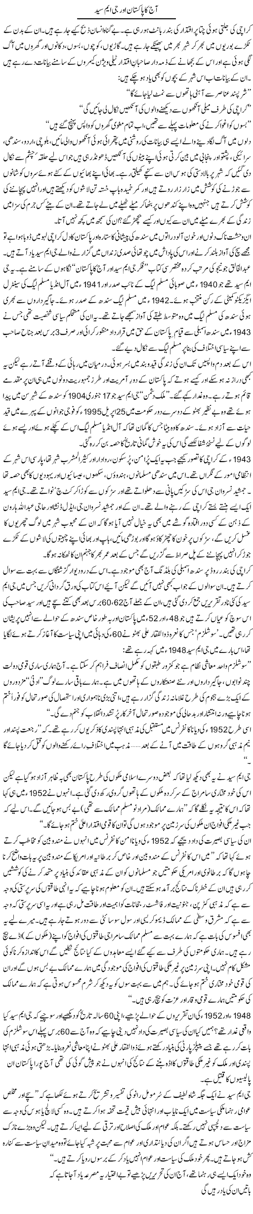 Aaj Ka Pakistan aur G.M Syed by Zahida Hina 21 august 2011