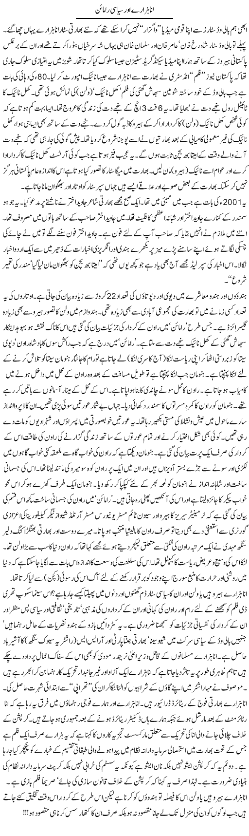 Anna Hazare Aur Siyasi Ramaain by Tahir Server Mir 21 august 2011