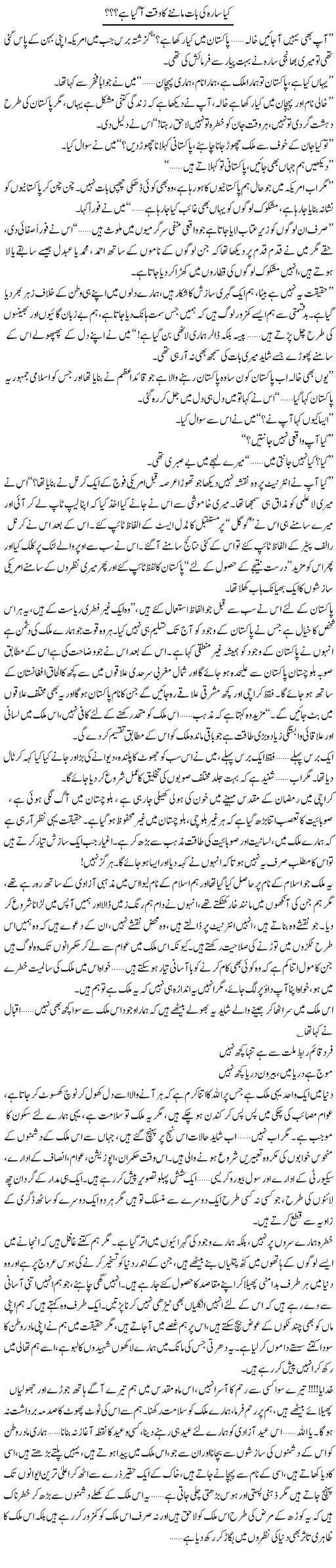 Kya Sara Ki Baat Mannay Ka Waqt Aa Gaya by Shireen Haider 21 august 2011