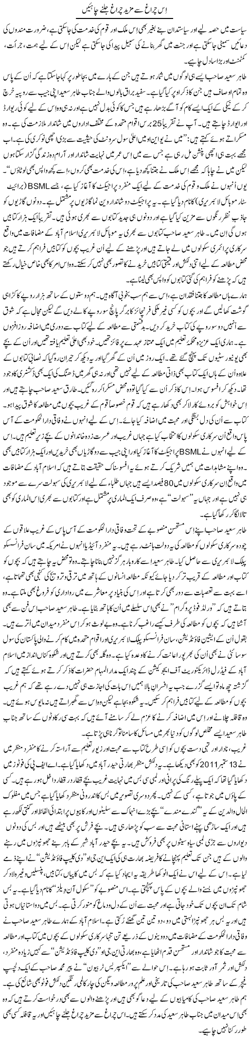 Es Chiragh Say Mazeed Chiragh Jalnay Chahiye by Tanveer Qaisar - 12th october 2011