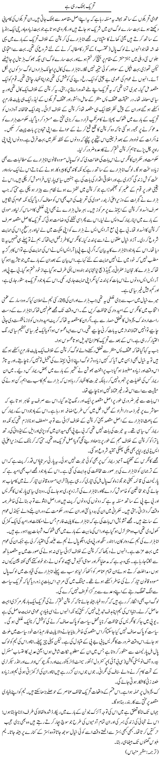 Tehreek Bhatak Rahi Hai by Kaldeep Nayer - 21st october 2011