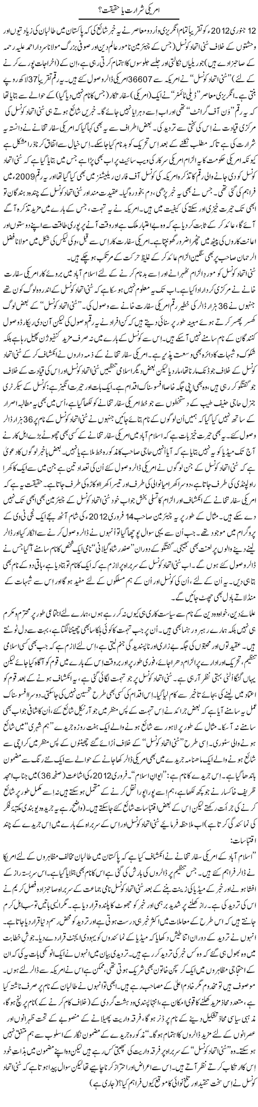 Amrici Shararat Ya Haqeeqat by Tanveer Qaisar - 16 February, 2012