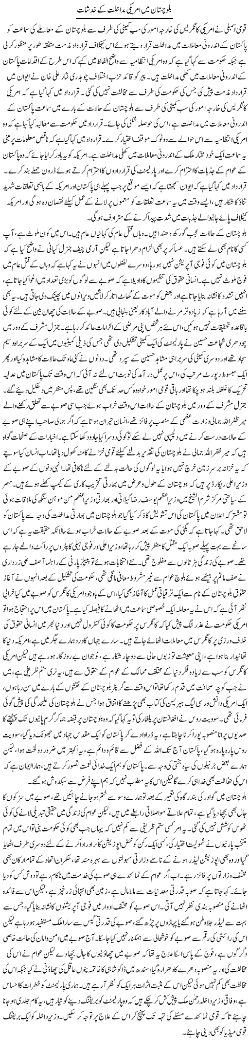 Balochistan Mein Amrici Mudakhlat by Asadullah Ghalib - 15 February, 2012