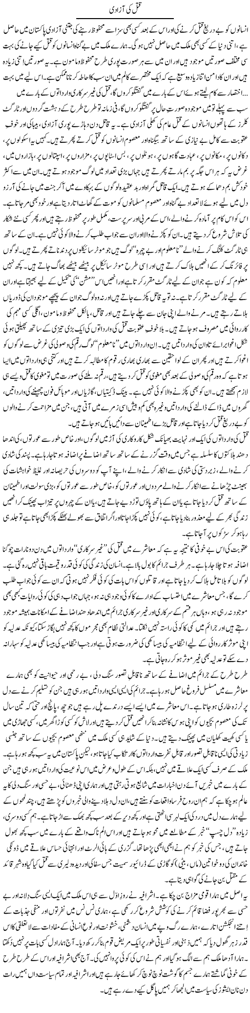 Qatal Ki Azadi by Anwar Ahsan - 10 February, 2012