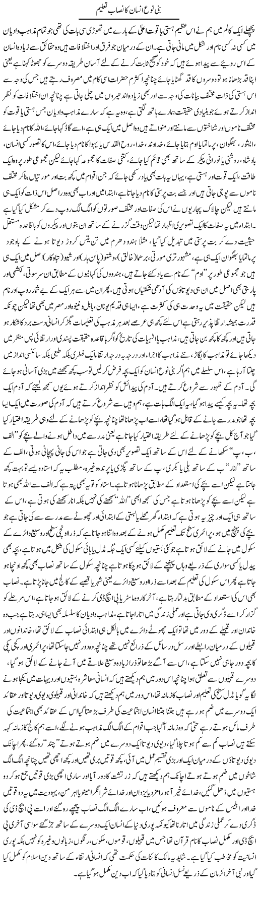 Bani Nu Insan Ka Nisab-e-Taleem by Saadullah Jan Barq - 20 June 2012